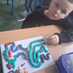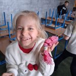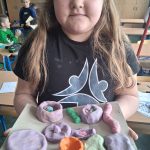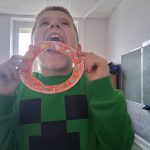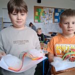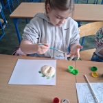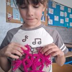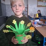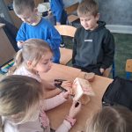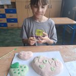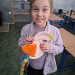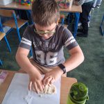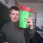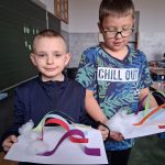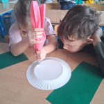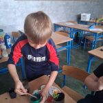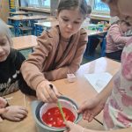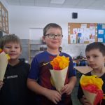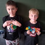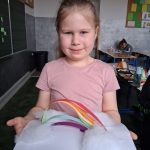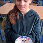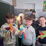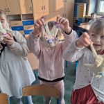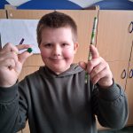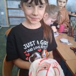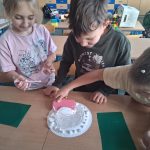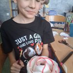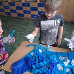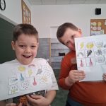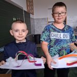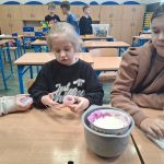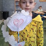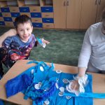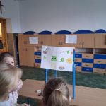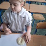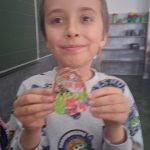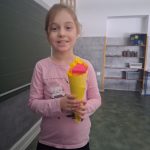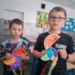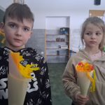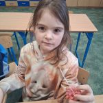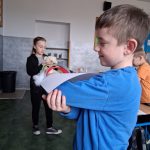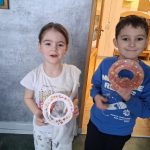 W piątek był dzień cyrku. Dzieci obejrzały występy cyrkowe, obejrzały lekcje żonglowania. Potem same próbowały żonglować co okazało się trudną sztuką. Próbowali powtórzyć numer klaunów wychodzących z małego autka – próbowali się zmieścić się w ławeczkach i pod ławeczkami na koniec odbyli mały trening z kółkami. Za pomocą nóg podawali sobie kółko co okazało się nie takie proste ale i bardzo zabawne. Na koniec rysowali swój własny cyrk.