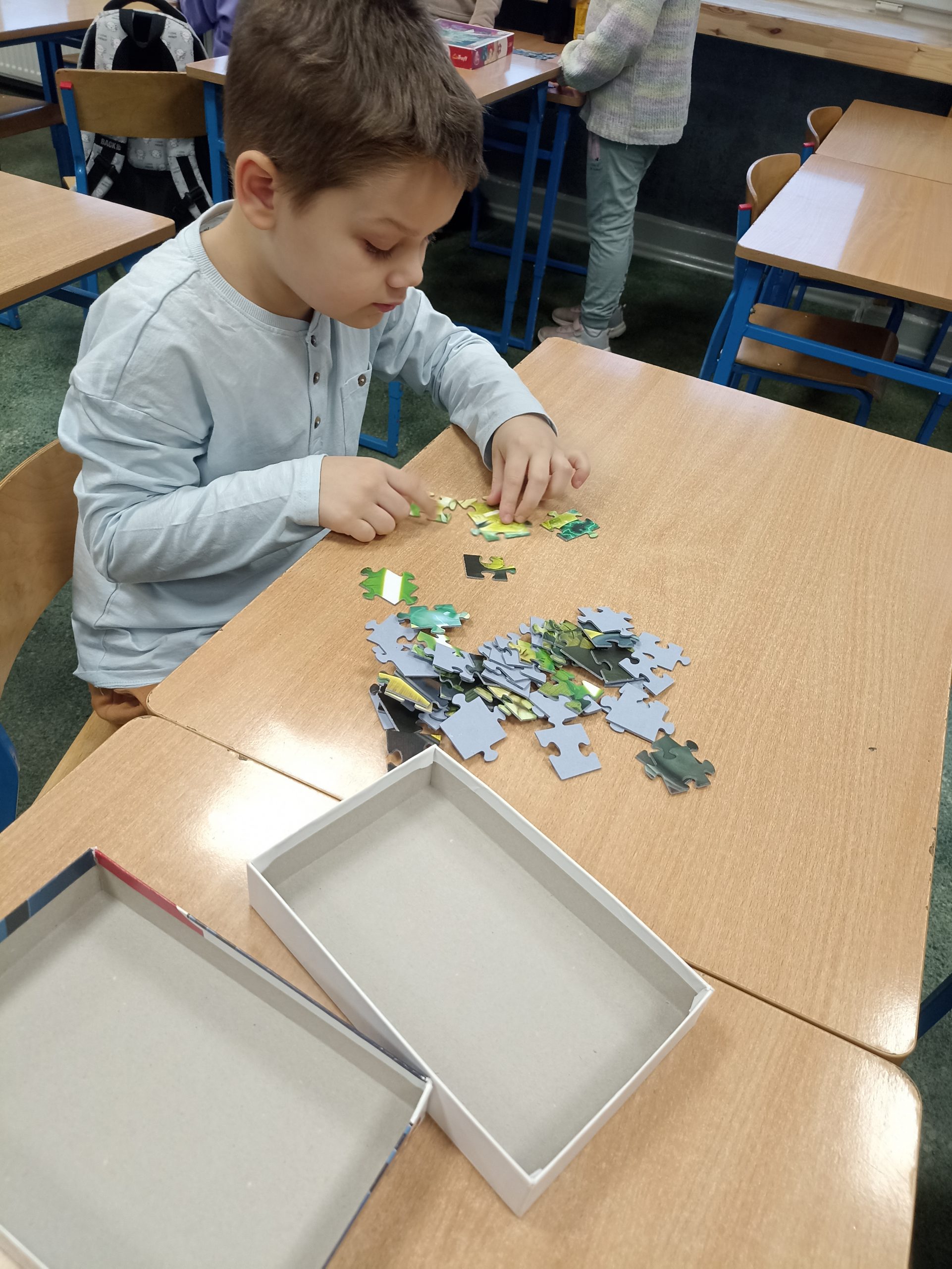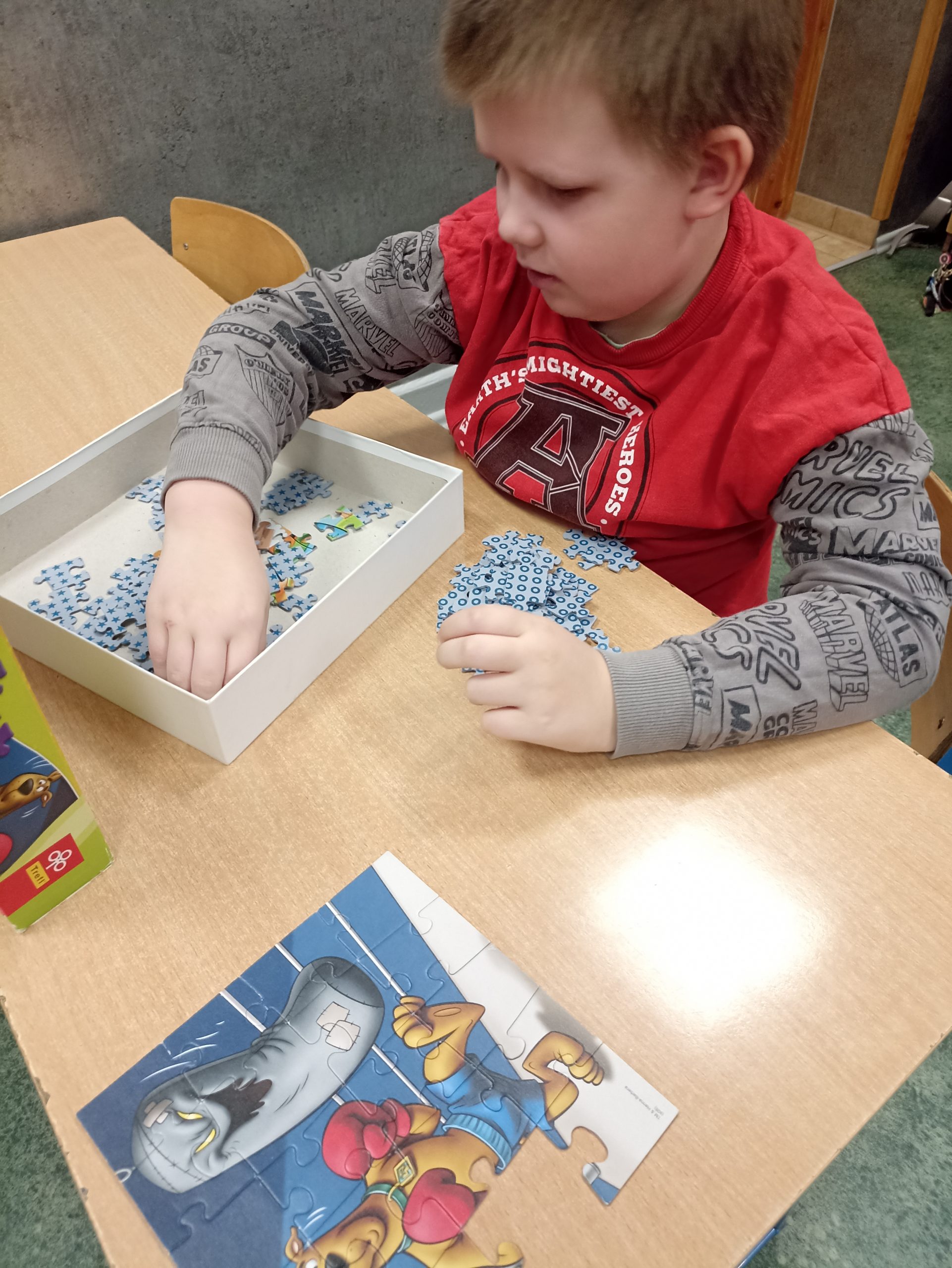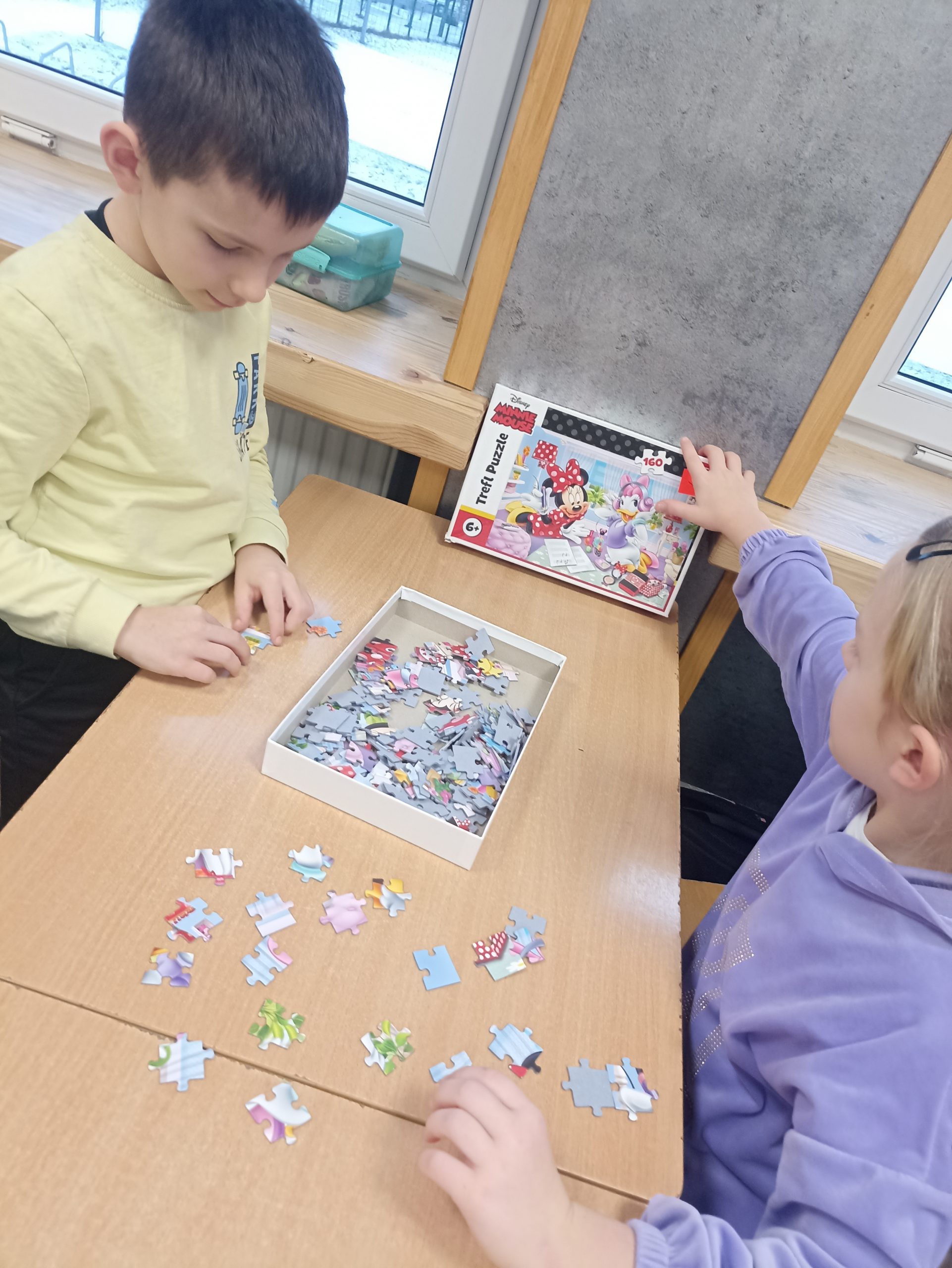 29 stycznia obchodzony jest Międzynarodowy Dzień Puzzli. Ten dzień ma zwrócić uwagę na ich pozytywny wpływ na nasz mózg. Łamigłówki świetnie rozwijają koncentrację oraz stymulują obszary odpowiedzialne w umyśle za logiczne myślenie. W świetlicy szkolnej dzieci miały okazję zmierzyć się z różnego rodzaju puzzlami. Okazuje się, że wielu pierwszaków radzi sobie doskonale.