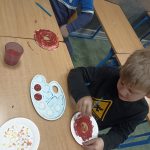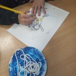 W tym tygodniu w małej świetlicy głównym tematem zajęć był kosmos. Dzieci poznały znaczenia pojęć kosmos, planeta, Układ Słoneczny, Księżyc, gwiazdozbiór, gwiazda. Dzięki filmom edukacyjnym dowiedziały się również wiele ciekawostek na temat słońca, księżyca i ziemi. W ramach utrwalenia wiedzy wykonały plakaty tematyczne oraz rakiety kosmiczne.