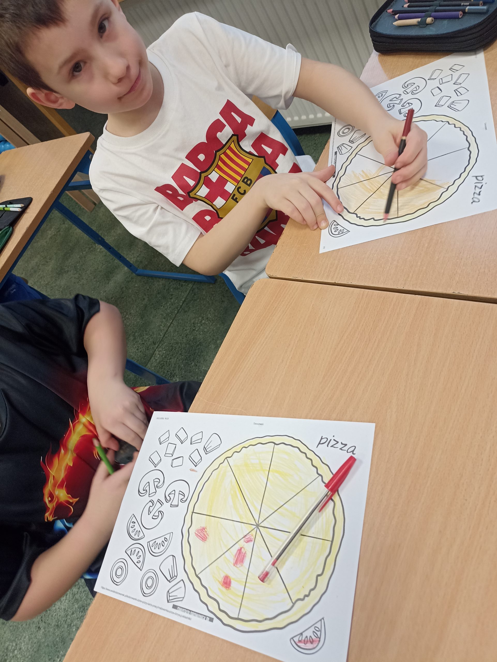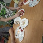 W czerwcu pierwsze klasy odbyły zajęcia przypominające temat zdrowego odżywiania. Rozmawialiśmy na temat tego co jest zdrowe a co niekoniecznie. Dzieci opowiadały o swoich posiłkach w domu oraz o tym co zazwyczaj mają w śniadaniówce. Każdy uczeń na koniec zajęć narysował swój zdrowy posiłek.