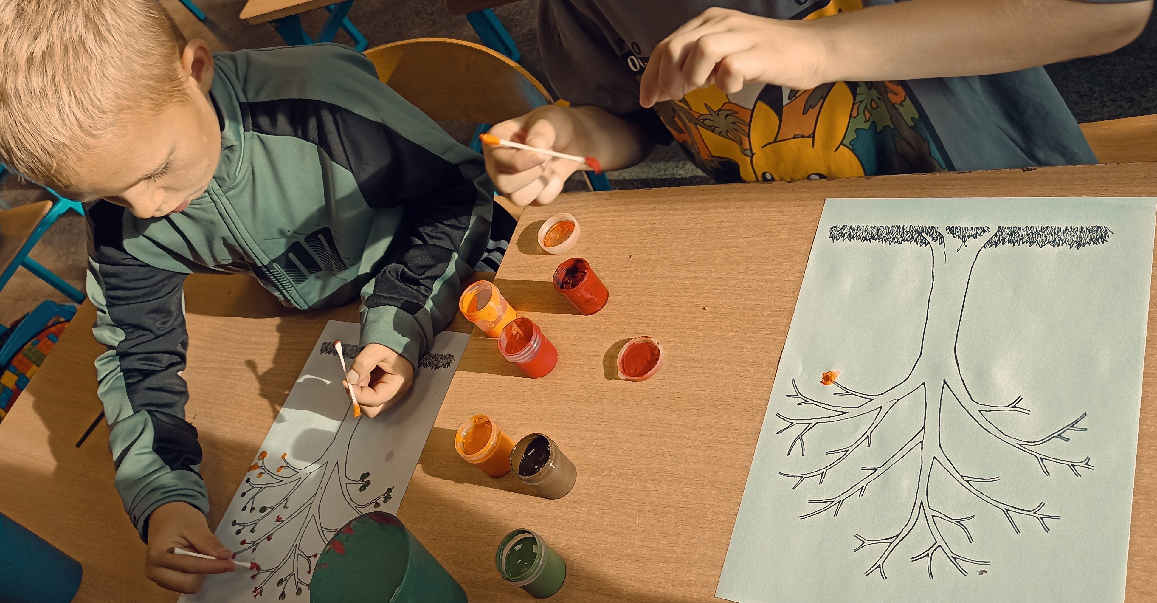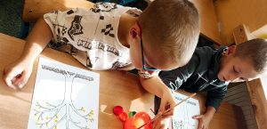 W zeszłym tygodniu u pierwszaków obchodzony był Dzień Lasu. Dzieci z zaangażowaniem brały udział w zajęciach, które pozwoliły na lepsze zrozumienie tego jak ważne są lasy i drzewa dla ludzi i całej naszej planety. Uwieńczeniem wspólnej pracy były kolorowe plakaty przedstawiające lasy i to co nam one dają. Dzieci wykonały również opaski z symbolem drzewa.