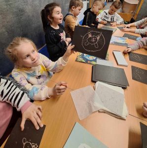 28 lutego 2024 roku naszą szkołę odwiedziły dwie najstarsze grupy przedszkolaków z zaprzyjaźnionego Przedszkola nr 4. Celem wizyty było bliższe poznanie szkoły, do której dzieci będą uczęszczały po wakacjach. Starszaki zwiedziły najważniejsze miejsca w szkole m.in. salę gimnastyczną, salę komputerową, świetlicę oraz bibliotekę szkolną. Dzieci pod opieką pań wychowawczyń miały możliwość uczestniczenia w spotkaniu czytelniczym. W bibliotece szkolnej grupa przedszkolna odgadywała gwiazdozbiory opisane w wierszach. Pod koniec spotkania przedszkolaki wykonywały prace plastyczne związane z tematyką zajęć. Za aktywny udział w zajęciach dzieci otrzymały słodki poczęstunek.
