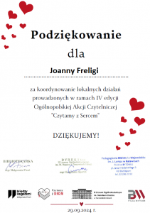 Podziękowanie za zorganizowanie akcji ogólnopolskiej