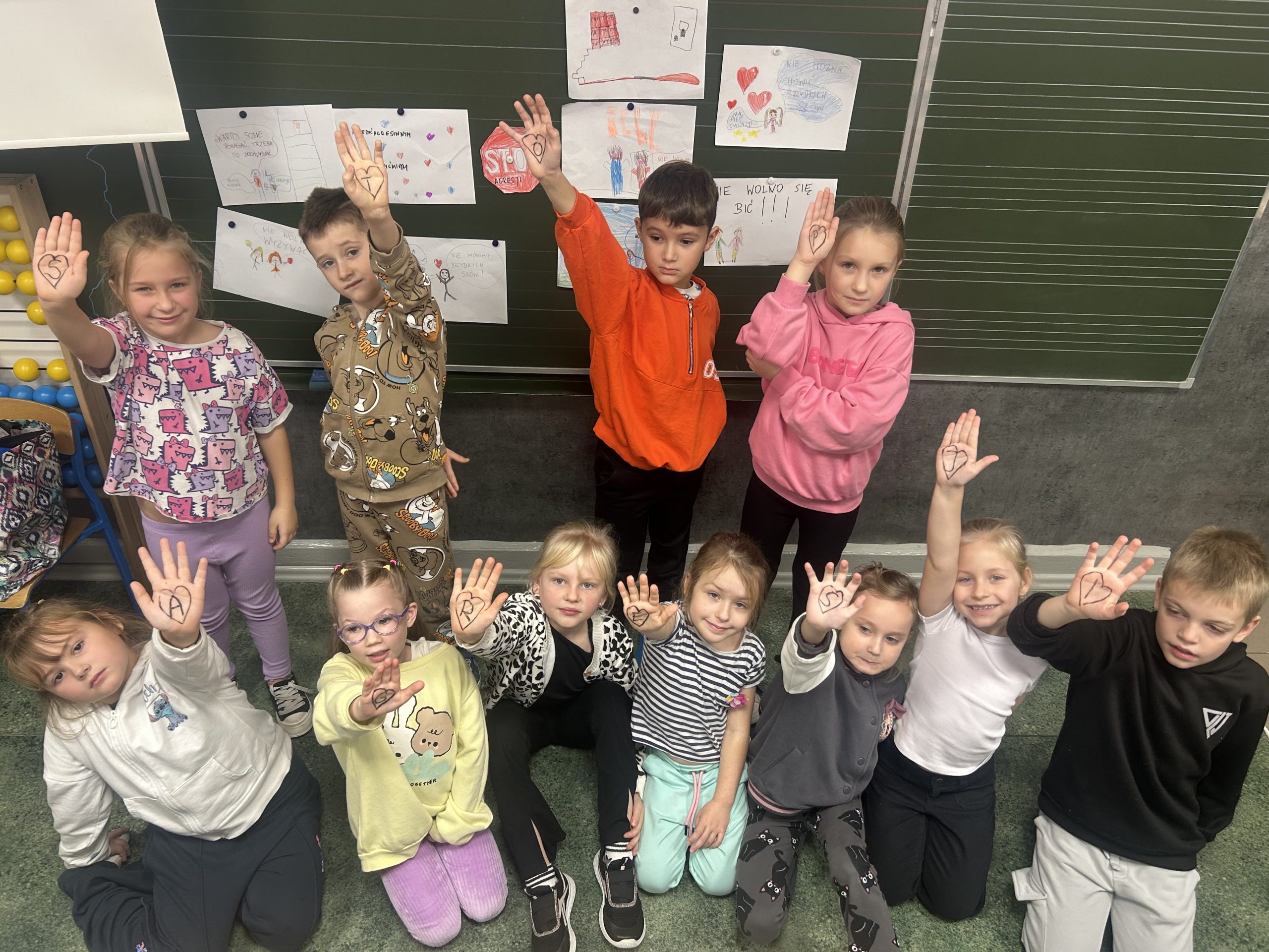 Dzieci na świetlicy przygotowały prace poświęcone przeciwdziałaniu agresji. Rozmawiały o tym, jak można sobie pomagać i wspierać się nawzajem. Losowały emocje, pokazywały je na sobie oraz opowiadały o różnych sytuacjach z życia codziennego. Uczyliśmy się empatii, zrozumienia i reagowania z szacunkiem. Razem mówimy: Stop agresji w szkole.