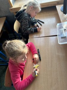 Dzisiaj dzieci ze świetlicy miały okazję poznać budowę i brzmienie skrzypiec. Zajęcia muzyczne przeprowadziła uczennica klasy 4b Ania Górny. Starsza koleżanka zagrała na skrzypcach kilka kolęd oraz dokładnie omówiła budowę tego instrumentu. Zaprezentowała również jak należy dbać o skrzypce, jak je czyścić. Każdy miał okazję samodzielnie zagrać.